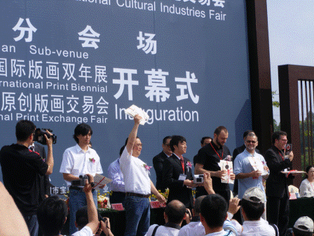 سبعون دولة ترتفع أعلامها فوق مبني ورشة الحفر بجوان لان معلنة افتتاح بينالي الحفر الدولي بالصين. تم اختيار ٣٣٠ عملاً فائق الروعة من جميع الأعمال المتقدمة من أنحاء العالم و تم استبعاد ٢٥٠٠ عمل آخر لا لأنها أعمال سيئة بل لأن البينالي التزم الاختيار بمنتهي الدقة و القسوة لاختيار الأفضل فقط ..